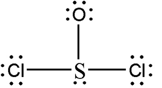 ex) SOCl2 (thionyl chloride)의 루이스 구조의 형식 전하를 계산하라.