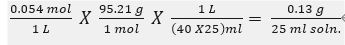 ⇒ 0.054M MgCl2 용액이 25ml에는 MgCl2 이 0.13g이 들어 있다.
