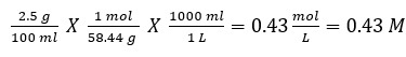 2.5%(w/v) NaCl(F.W 58.4)의 M은?