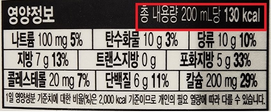 요즘 식료품에는 주로 kcal 단위로 열량이 표시된다.
