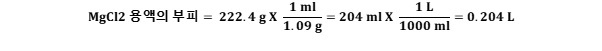 1) 물 0.200 L에 MgCl2 22.4 g 을 녹여 용액을 만들었다.