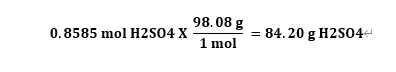 0.8585 M(mol/L) 황산 수용액은 1L 에 황산 84.20 g 있으므로