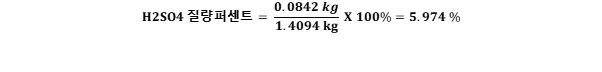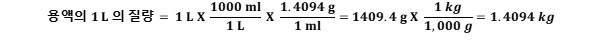 즉, 0.8585 M 황산 수용액의 1 L 의 질량은 1.4094 kg 이다.