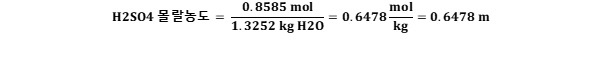 이 용액에서 황산의 몰랄농도, 질량퍼센트을 계산하라.