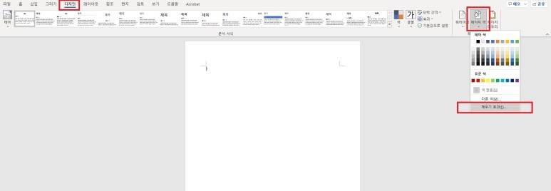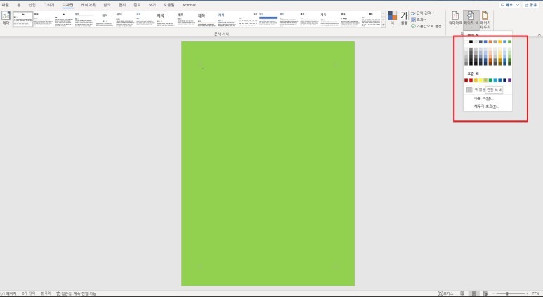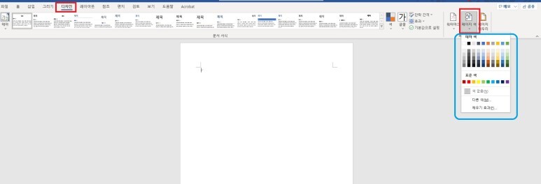 2. 상단 메뉴창에 디자인 → 페이지 색 을 선택한다.