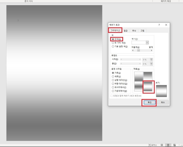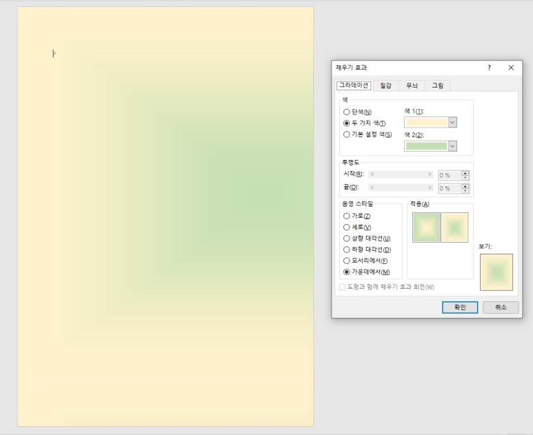 [Word] 페이지 색 - 채우기 효과 : 그라데이션 설정하기