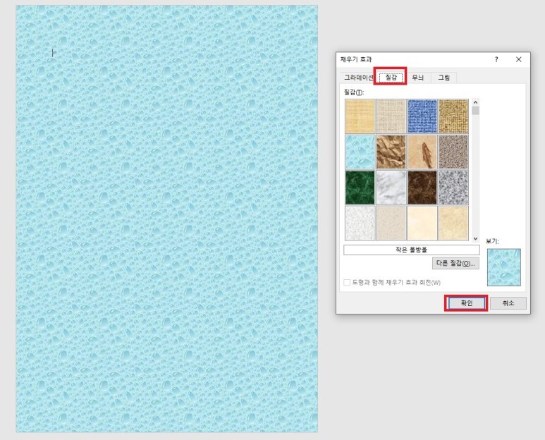 [Word] 페이지 색 - 채우기 효과 : 질감 설정하기