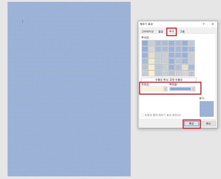 [Word] 페이지 색 - 채우기 효과 : 무늬 설정하기